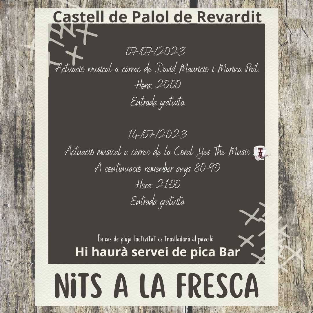 Dies 07/07/2023 i 14/07/2023 – Entrada gratuïta. En cas de pluja l’activitat es traslladarà al pavelló. Hi haurà servei de pica Bar.